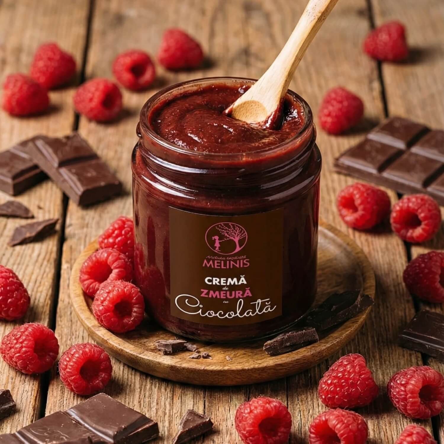 The base of this Melinis cream is made simply from raw honey & raspberries, combined at low temperatures without boiling to preserve their natural taste. To this, bean to bar chocolate made from pure cocoa beans is added, giving the spread its rich texture and depth,